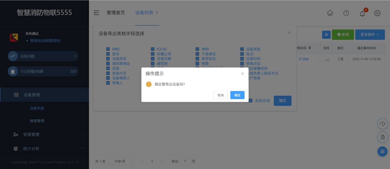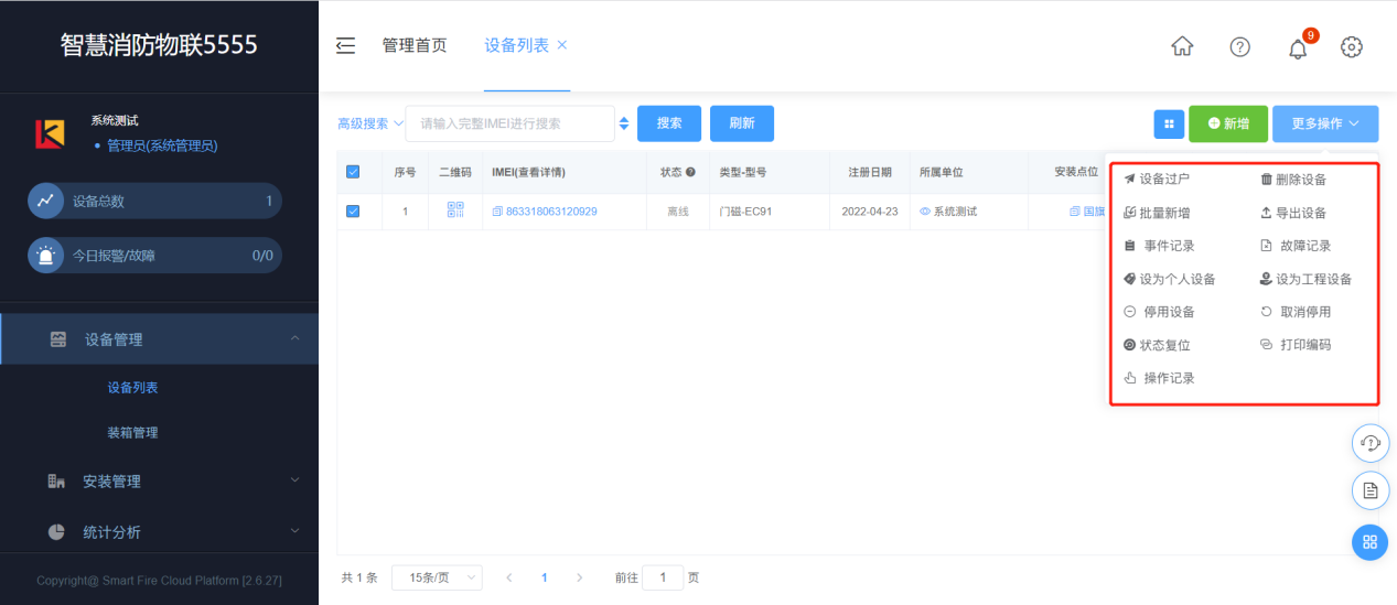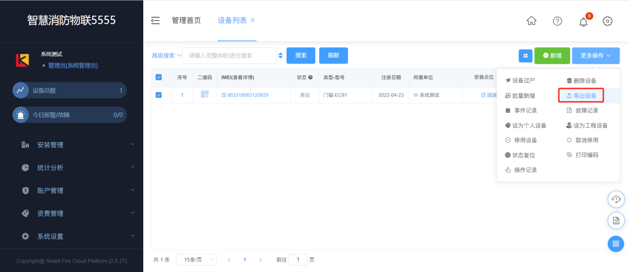 在此界面可執行新增設備、設備過戶、刪除設備、導出設備數據等操作