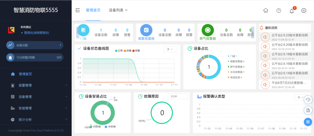 智慧消防物聯網云平臺用于消防設施的監控、管理和維保的平臺軟件。 消防物聯網云平臺基于云平臺的架構,并結合物聯網+互聯網技術將分散在城市各處的消防設施(手動火災報警按鈕、感煙火災探測器、感溫火災探測器、門磁、火災聲光報警器)統一實時監管,將收集到的消防設施數據進行智能化分析,在城市消防設備巡安檢、實時監測、維護及綜合管理等方面,提供全面、準確、及時的信息反饋。監控中心支持APP、短信、微信公眾號、電話等多平臺報警方式,減少火災隱患,降低火災風險,保障人民的生命及財產安全。