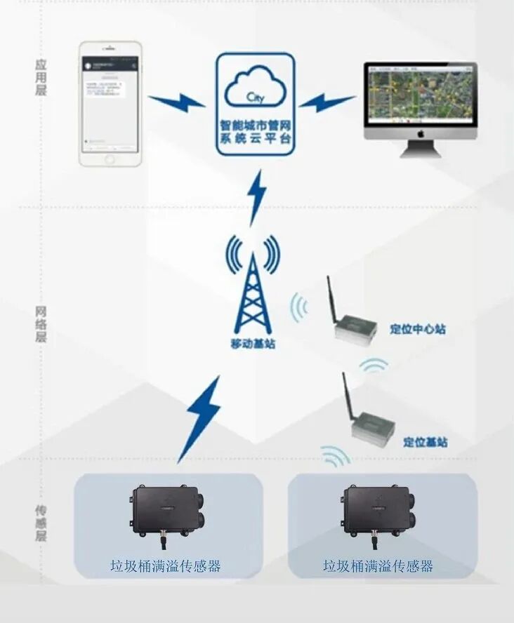 雙桶型滿溢傳感器:支持同時監測兩個垃圾桶的狀態,適用于干濕/可回收/有害等分類投放點,提升分類管理效率。