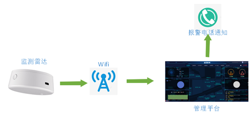 人體跌倒監測系統主要由人體跌倒監測雷達、wifi網絡及綜合管理云平臺組成。