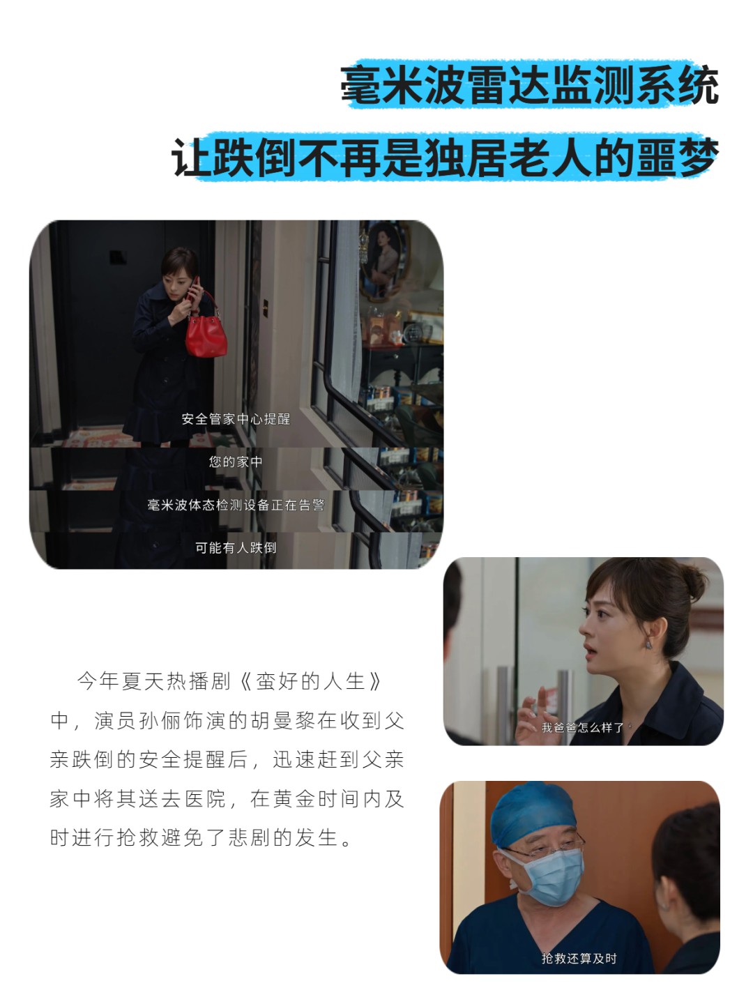 對此,很多觀眾大呼神奇,劇中這種跌倒預警設備簡直就是獨居老人的必備神器。有了這種貼心助手的日夜守護,也讓眾多不能陪伴老人左右的子女可以在外安心工作。跌倒監測系統是怎樣實現精準守護的呢?