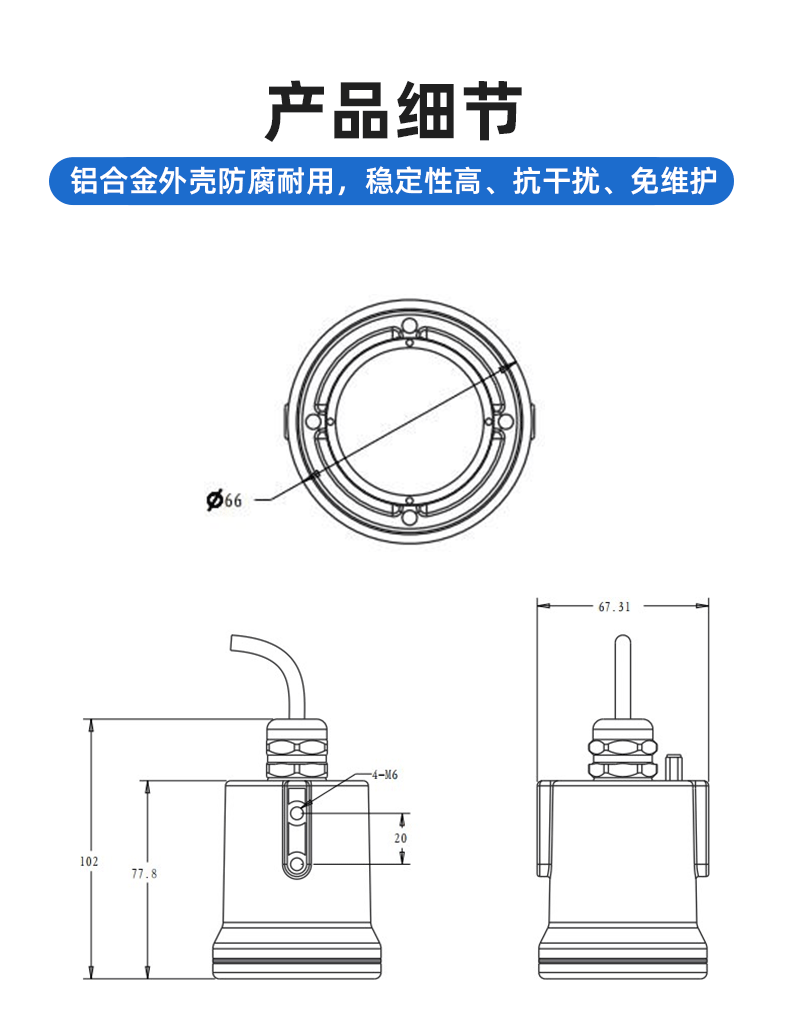 3、最窄6°天線波束角,安裝環境中的干擾對儀表的影響更小,安裝更為便捷。