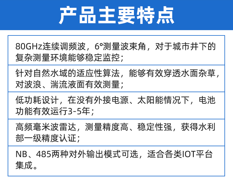SW80 系列雷達水位計的主要優勢如下: