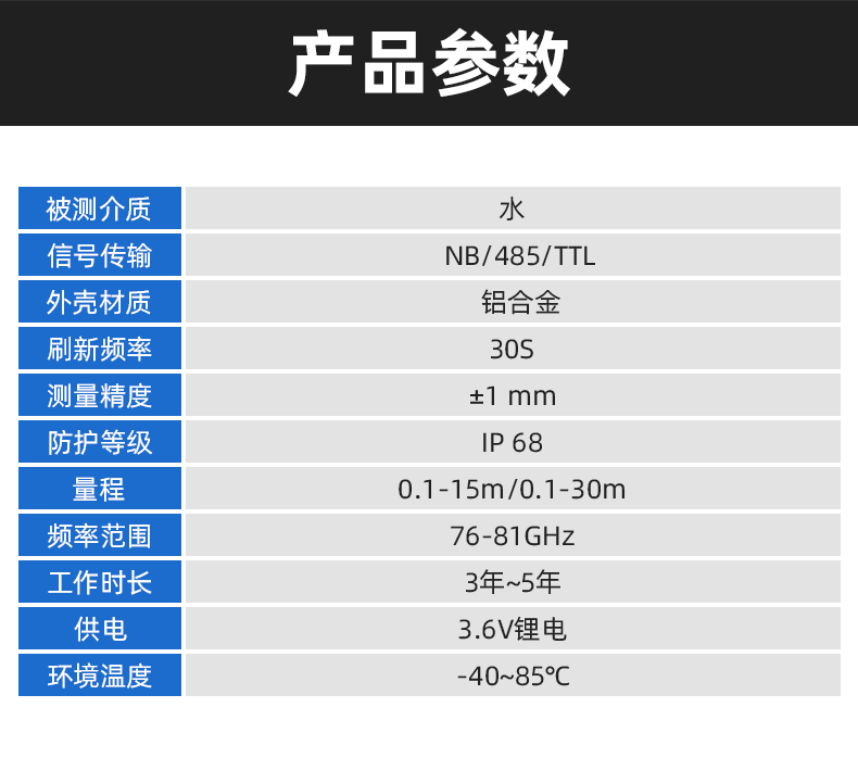 SD123-RL01-SW80 系列產品,是指工作在 76-81GHz 的調頻連續波(FMCW)雷達產品。 產品最大量程可以達到 30m, 盲區在 10 cm 以內。由于它工作頻率更高,帶寬更大,測量精度更 高。產品提供支架的固定方式,3.6V 鋰電池供電,NB 通信,無需現場布線使得安裝便捷簡易。