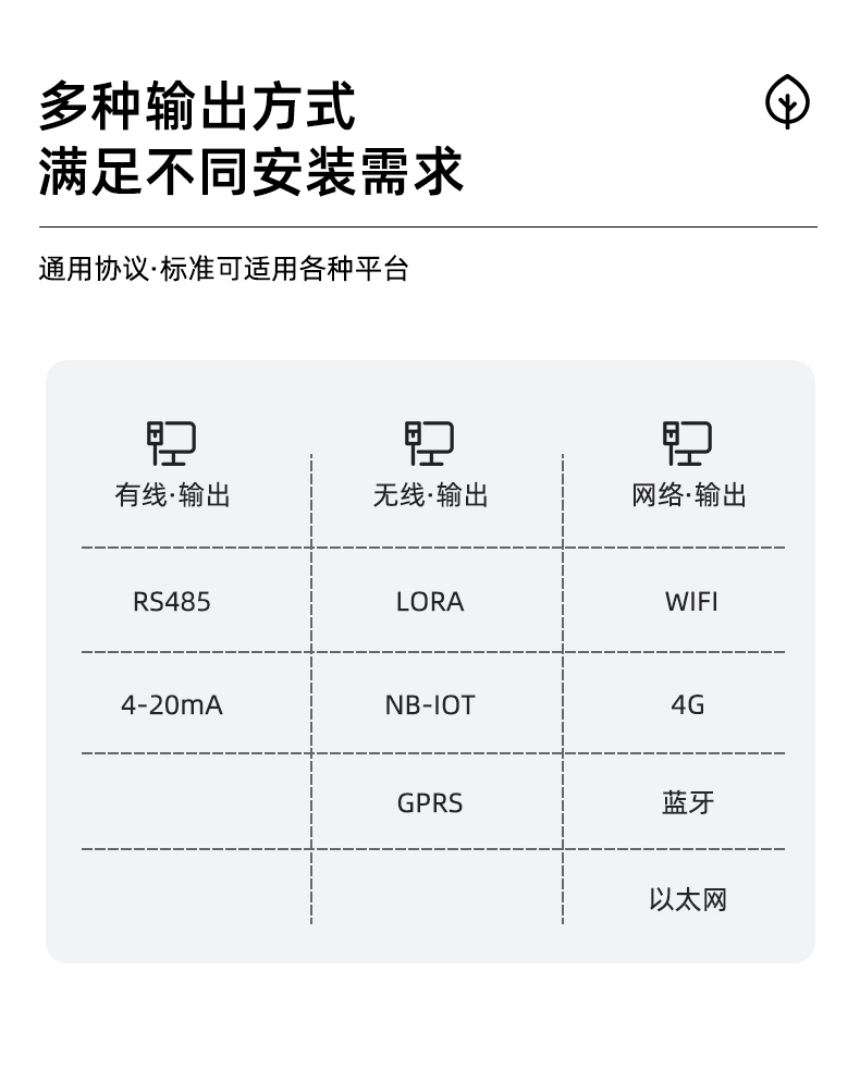 | 輸出方式 | 默認輸出 | Modbus-RS485 或 4~20mA | ||