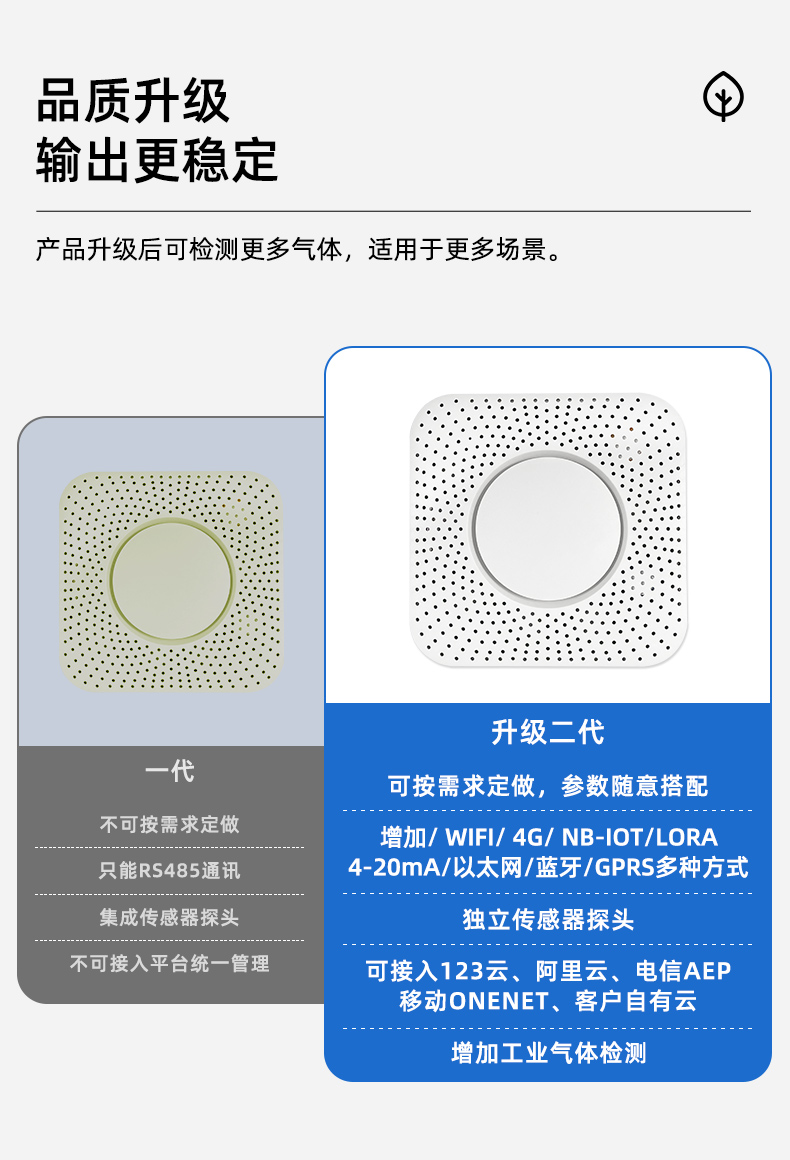 SD123-E60-C是一款多參數多參數的空氣質量傳感器,該傳感器可檢測并實時輸出pm2.5、pm10、pm1.0、TVOC、溫度、濕度、臭氧、酒精、甲烷、氨氣、硫化氫、二氧化硫等多項空氣質量指標,所有氣體檢測均采用獨立傳感器探頭。檢測氣體類型可自由選擇搭配,其設計緊湊、占用空間小、功能齊全、性能穩定、性價比極高,支持串口RS485、無線4G、藍牙、WIFI等輸出方式,極大的方便了空氣質量檢測和物聯網氣體檢測方案的開發和應用。